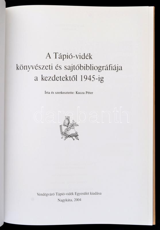 Kucza Péter: A Tápió-vidék könyvészeti és sajtóbibliográfiája a kezdet... https://www.darabanth.com/en/285-Online-auction/285.0/Books/~100028/Kucza-Peter-A-Tapio-videk-konyveszeti-es-sajtobibliografiaja-a-kezdetektol-1945-ig-Nagy~II1484943