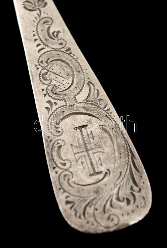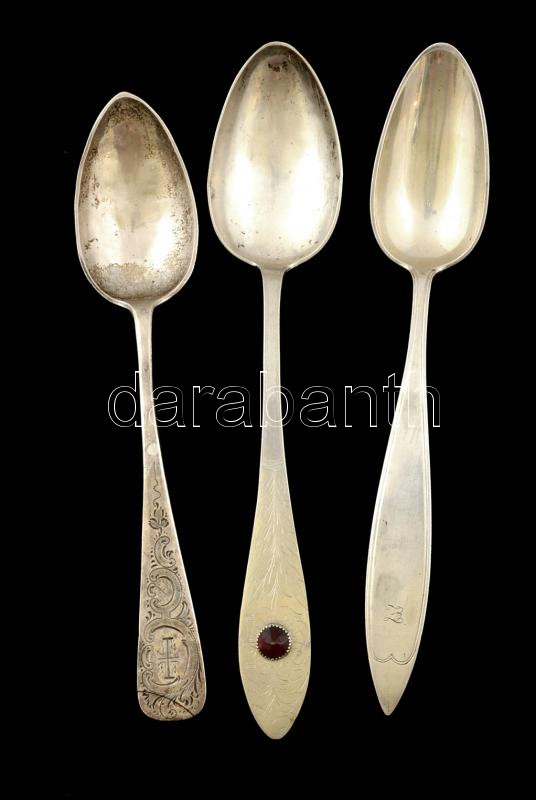Ezüst (Ag.) német kanalak ( 3db), egyiken csiszolt üveg díszítéssel, j...
