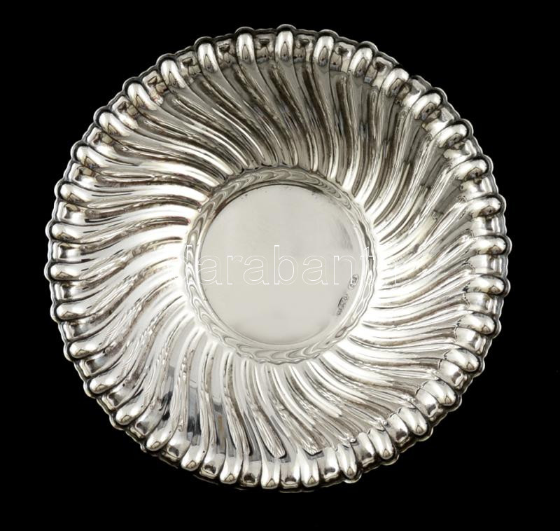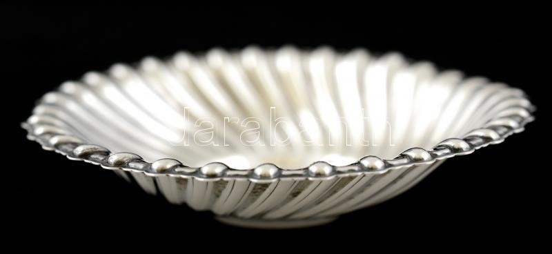 Ezüst(Ag) kerek bordás tálka, jelzett, d: 8 cm, nettó: 14,8 g