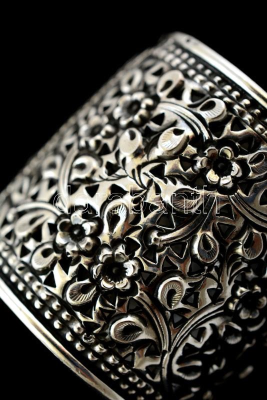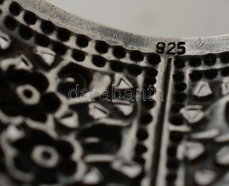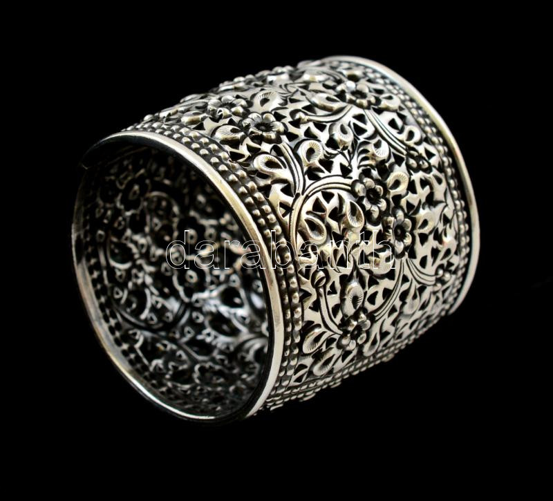Ezüst(Ag) virágmintás áttört szalvétagyűrű, jelzett, d: 4,5 cm, h: 4 cm, nettó: 36,4 g