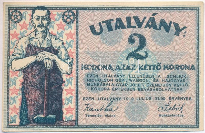 Budapest 1919. 2K utalvány "Schlick Nicholson Gép-Waggon- és Hajógyár" T:I-