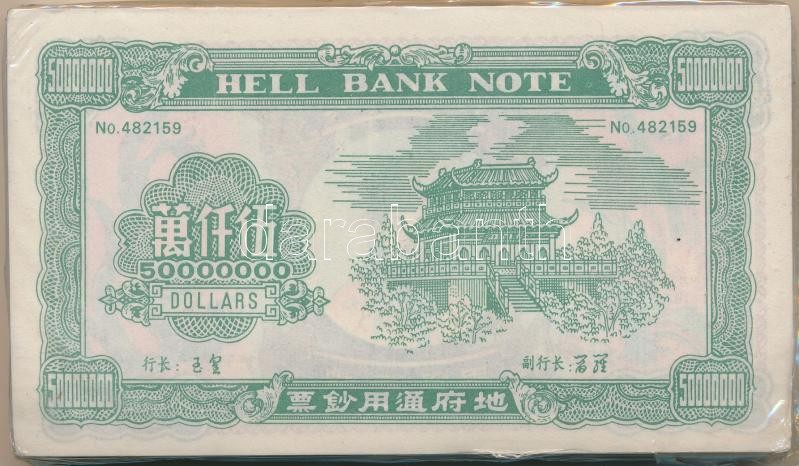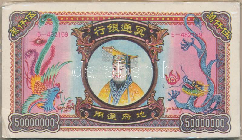 Kína DN Égetési pénz 50.000.000 névértékben (150x) eredeti, kicsit sérült csomagolásban T:I China ND Hell banknotes in original, slightly damaged packaging 50.000.000 (150x) C:UNC
