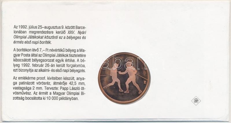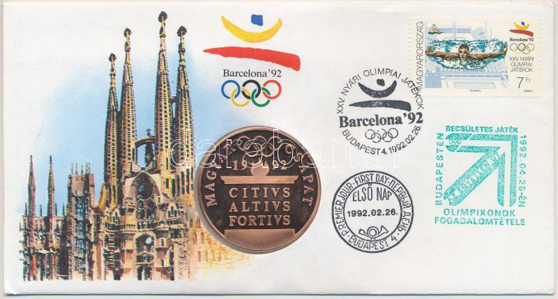 1992. "Barcelona - Magyar csapat" emlékérem bélyeges borítékon, elsőnapi bélyegzéssel T:PP