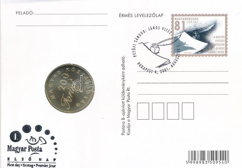https://www.darabanth.com/en/285-Online-auction/285.0/Numismatics/Envelopes-with-Coins-and-Banknotes~300003/2001-200Ft-Petofi-Sandor-Janos-vitez-ermes-levelezolapon-TBU~II1486803