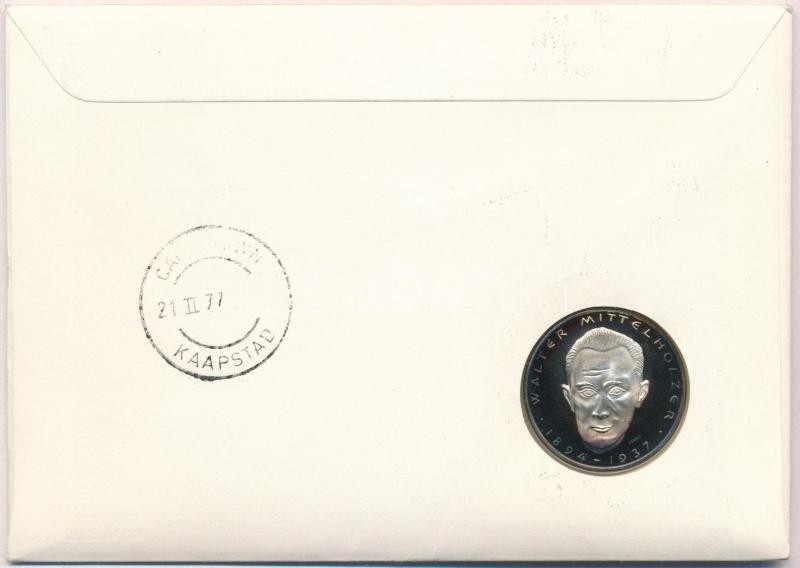 Svájc 1977. "Walter Mittelholzer" Ag emlékérem lezárt borítékban bélyegekkel és bélyegzésekkel (0.999/33mm) T:PP patina
