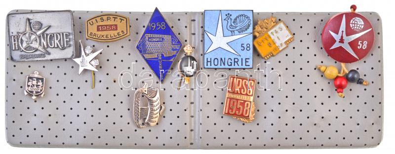 Description: Belgium 1958. 11db-os Brüsszeli Világkiállítás tematikájú jelvény és kitűző tétel, közte Magyarország (3xklf), Szovjetunió és Vatikán T:2