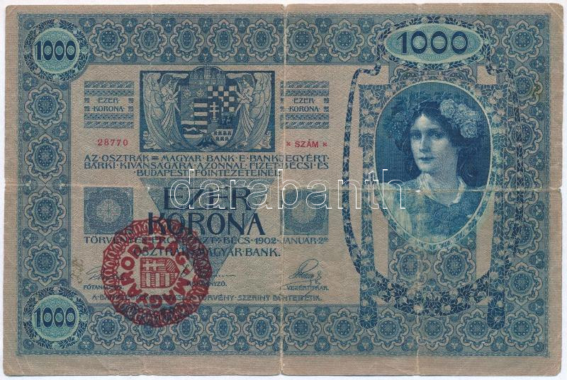 https://www.darabanth.com/en/285-Online-auction/285.0/Numismatics/Hungarian-Banknotes~300006/1902-1000K-piros-MAGYARORSZAG-felulbelyegzessel-TIII-szakadasok--Adamo-K35B~II1455951