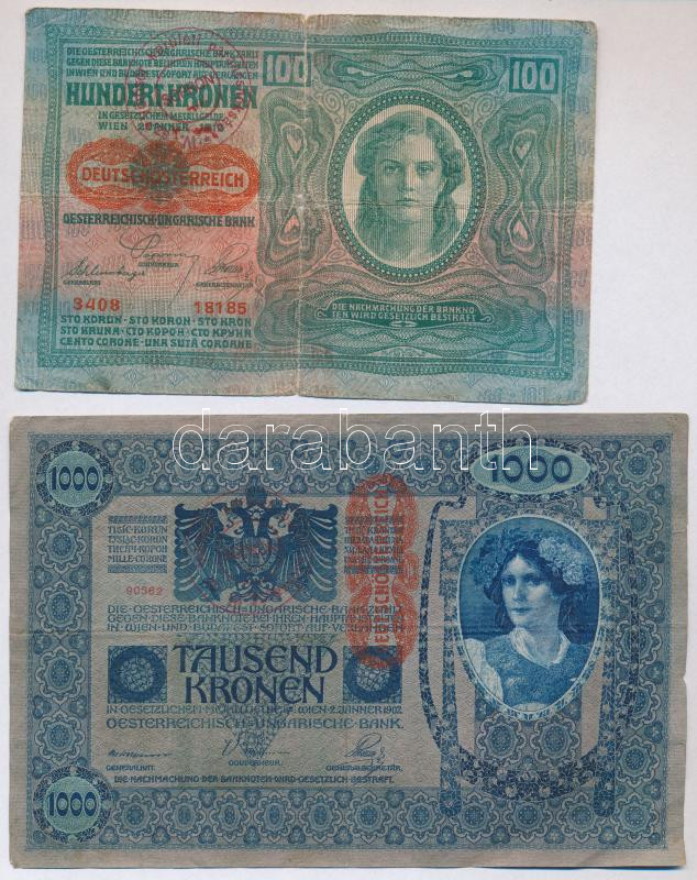 https://www.darabanth.com/en/285-Online-auction/285.0/Numismatics/Hungarian-Banknotes~300006/1902-1000K-plus-1912-100K-mindketto-piros-Deutschosterreich-felulbelyegzessel-es-hamis-IV-S~II1484167