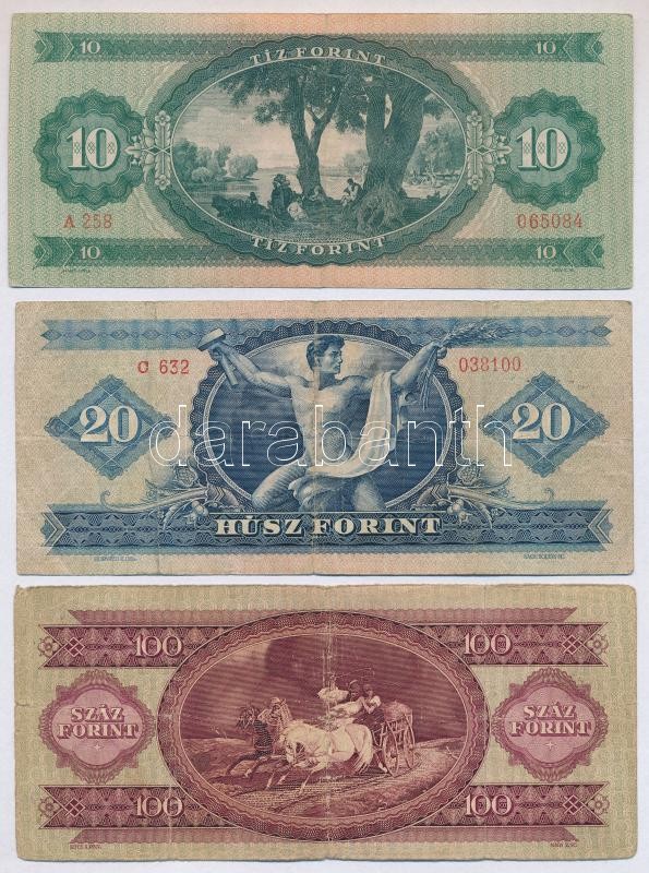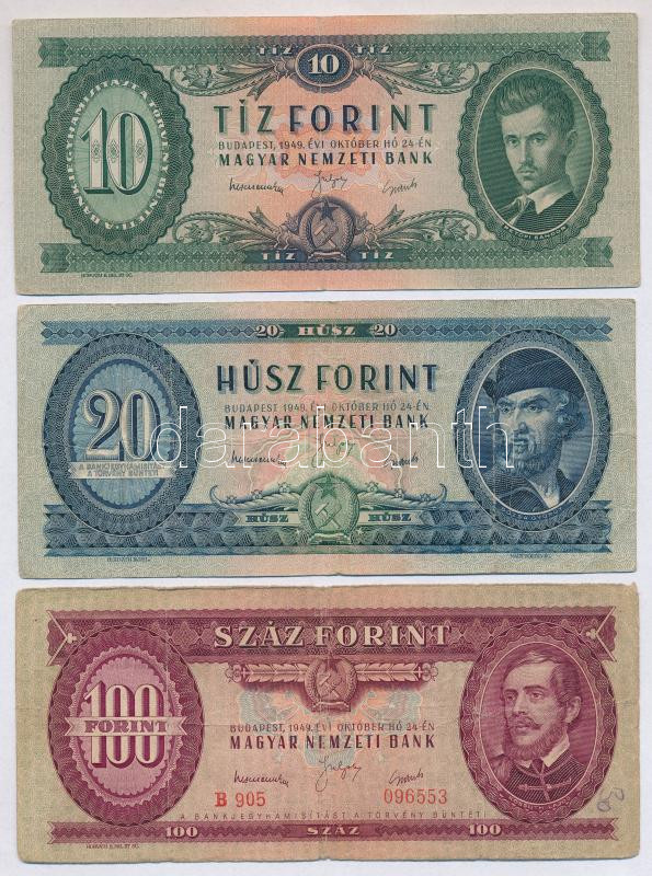 https://www.darabanth.com/en/285-Online-auction/285.0/Numismatics/Hungarian-Banknotes~300006/1949-10Ft-plus-20Ft-plus-100Ft-TIII-III---Adamo-F3-F10-F28~II1485461