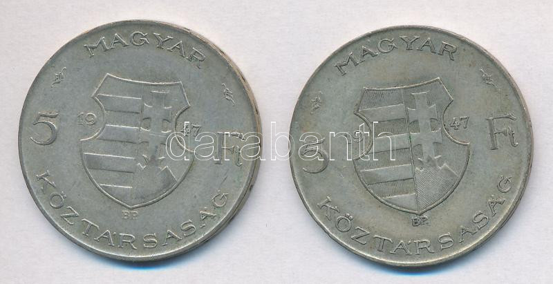 1947. 5Ft Ag "Kossuth" (2x) T:2,2-