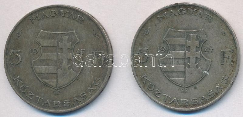 https://www.darabanth.com/en/285-Online-auction/285.0/Numismatics/Hungarian-coins-and-coins-with-Hungarian-mint-marks~300007/1947-5Ft-Ag-Kossuth-2x-T2-2-patina--Adamo-F81~II1462761