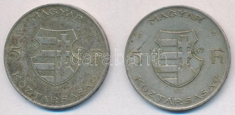 1947. 5Ft Ag "Kossuth" (2x) T:2-,3 patina