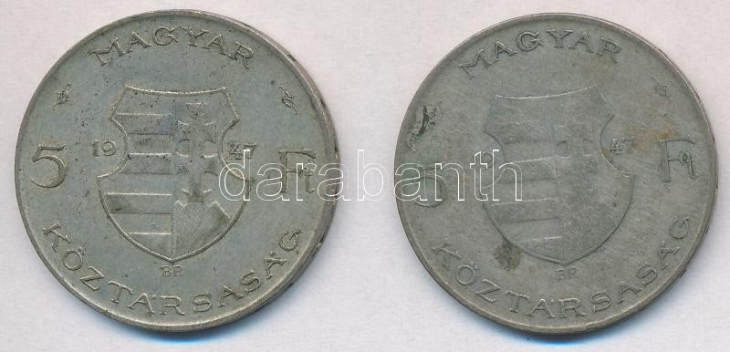 1947. 5Ft Ag "Kossuth" (2x) T:2-3 patina