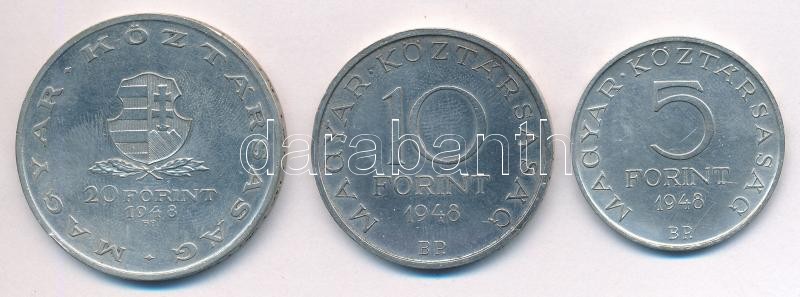 1948. 5Ft Ag "Petőfi" + 10Ft Ag "Széchenyi" + 20Ft Ag "Táncsics" - "Szabadságharc sor" T:2 ph. Adamo EM1, EM2, EM3