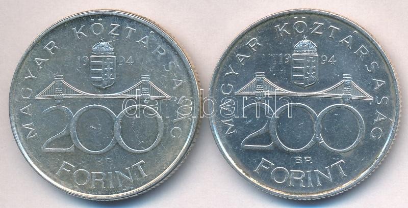1994. 200Ft Ag "Deák" (2x) T:2 kis fo.