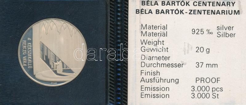 Description: Fülöp Zoltán (1951-) 1981. "Bartók Béla / A kékszakállú herceg vára" Ag emlékérem ÁPV plasztiktokban, német és angol nyelvű tanúsítvánnyal (20g/0.925/37mm) T:1(PP)