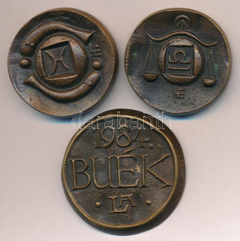 Lapis András (1942-) 1984. "Bika Taurus / BUÉK" Br emlékérem (45mm) + Ligeti Erika (1934-2004) DN "Halak hava" Br emlékérem (40mm) + "Mérleg hava" Br emlékérem (40mm) T:2