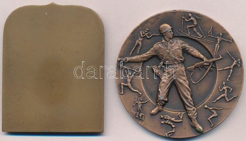 Description: ~1970. "Magasabb Egység Bajnokság" fém érem (75mm) + 1978. "A Magyar Néphadsereg a környezetvédelemért - I. Konferencia" egyoldalas Br plakett (71,5x55,5mm) T:2,2- hátoldalon ragasztásnyom