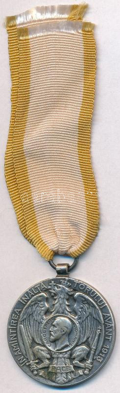 Description: Románia 1913. "Második Balkán-háború Győzelmi Medál" fém kitüntetés másolat mellszalagon, "S" jelzéssel a peremen T:2