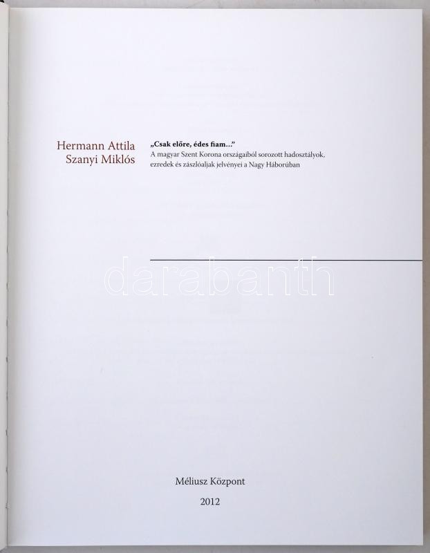 Hermann Attila - Szanyi Miklós: "Csak előre, édes fiam..." A magyar Szent Korona országaiból sorozott hadosztályok, ezredek és zászlóaljak jelvényei a Nagy Háborúban. Méliusz Központ, 2012. Újszerű állapotban.