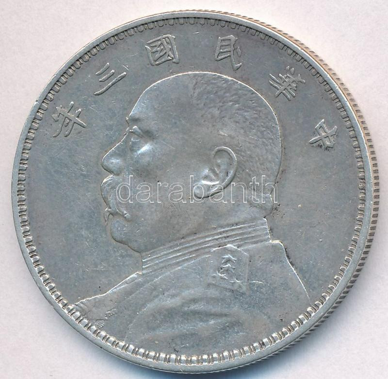 Kína 1914. 1$ (1Y) Ag hamisítvány "Yüan Shihkai" 6 karakter ... https://www.darabanth.com/en/285-Online-auction/285.0/Numismatics/Replicas-and-counterfeits~300017/Kina-1914-1USD-1Y-Ag-hamisitvany-Yuan-Shihkai-6-karakter-26-78g-T2--China-1914-1-Dollar-~II1494730