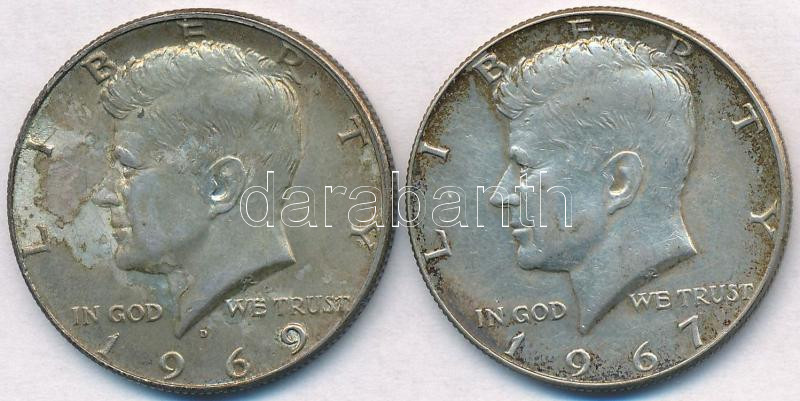Amerikai Egyesült Államok 1967. 1/2$ Ag + 1969D 1/2$ Ag "Kennedy&... https://www.darabanth.com/en/285-Online-auction/285.0/Numismatics/Worldwide-silver-and-metal-coins~300012/Amerikai-Egyesult-Allamok-1967-12USD-Ag-plus-1969D-12USD-Ag-Kennedy-T2-3-1969-nek-hianyzo-felso-~II1452013