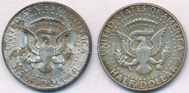 Description: Amerikai Egyesült Államok 1967. 1/2$ Ag + 1969D 1/2$ Ag "Kennedy" T:2,3 1969-nek hiányzó felső réteg