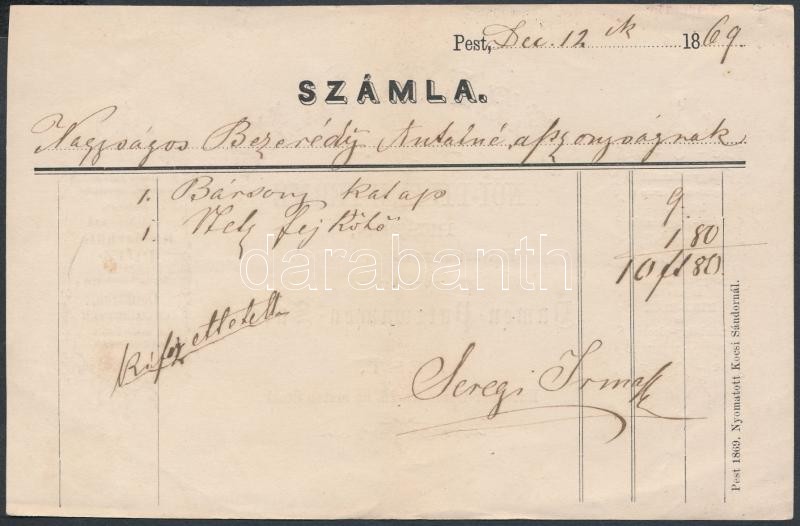 https://www.darabanth.com/en/285-Online-auction/285.0/Other-collectibles/Documents~100016/1869-Seregi-Irma-kalap-es-pipereszalon-Pest-Hatvani-utca-16-szamlaja-Bezeredy-Antalne-res~II1483671