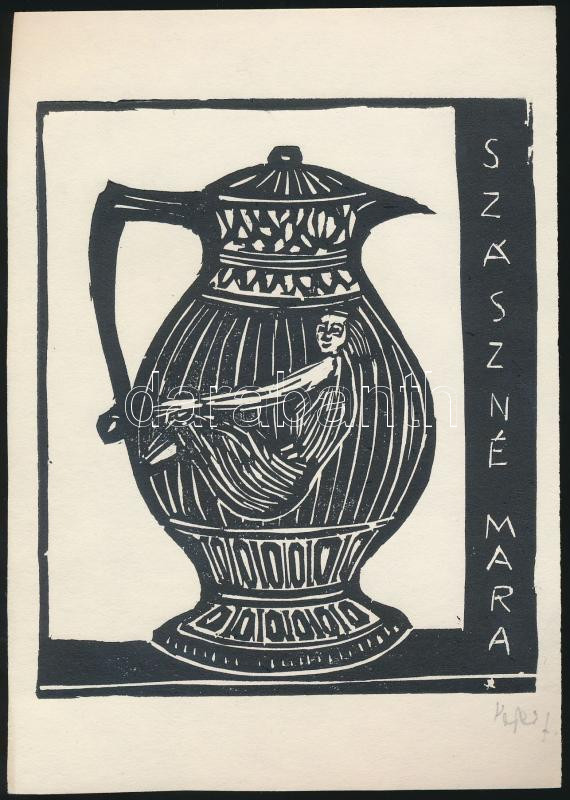 Perei Zoltán (1913-1992): Ex libris Szászné Marat. Linó, papír, jelzet...