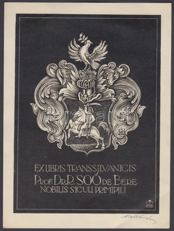 (Radványi)-Román Károly (1900-1957): Ex libris Soó Rezső Fametszet, pa...