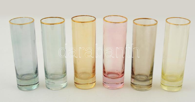Retró színes üvegpoharak, 6 db, jelzés nélkül, hibátlanok, m: 14 cm.