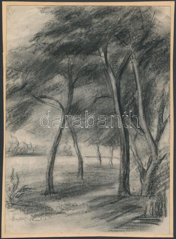 Deli Antal (1886-1960): Erdőszéle. Szén, papír, jelzett, 25×16 cm