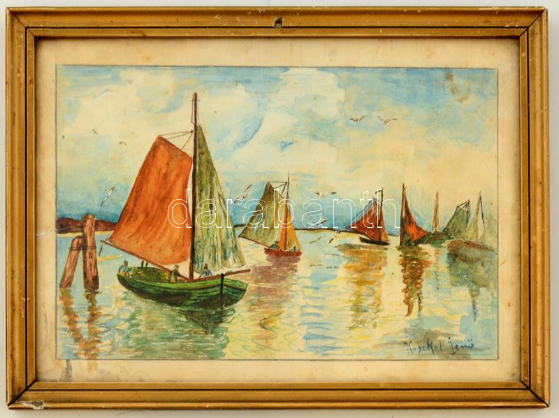 Koszkol jelzéssel: Vitorlások. Akvarell, papír, üvegezett keretben, 16...