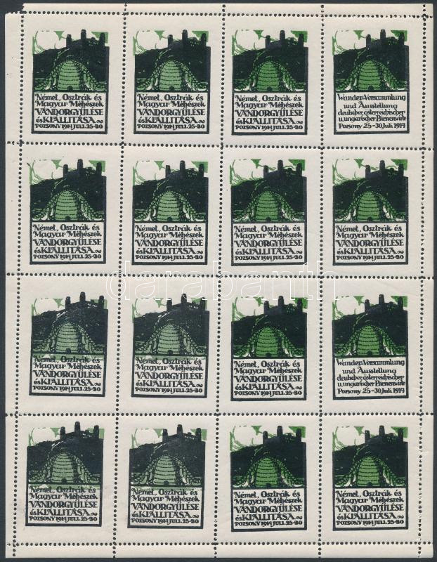 1914 Német és Osztrák Magyar Méhészek Vándorgyűlése és Kiállítása 16-os kisív, zöld színben