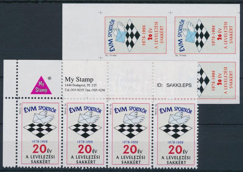 1998 2 db fogazott és vágott sakk levélzáró ívszéli 4-es tömbökben