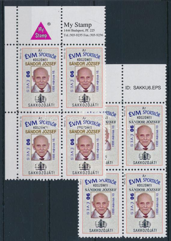 1999 2 db sakk levélzáró ívszéli 4-es tömbökben (Sándor József)