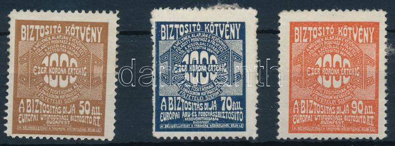 cca 1910 Poggyászbiztosítási illeték bélyegek 3 klf