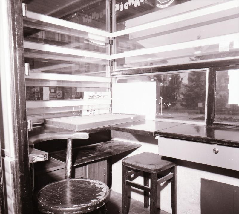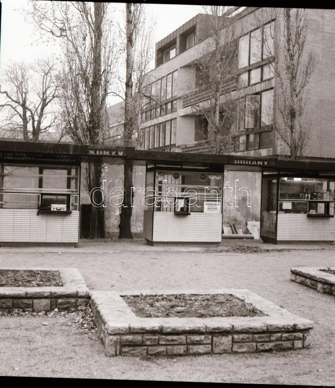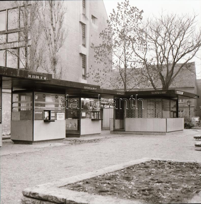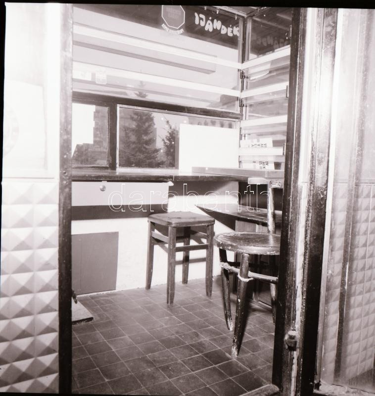 1982 Budapest, Dohány és Ajándék Kereskedelmi Vállalat Szentháromság téri pavilonja, 6 db szabadon felhasználható vintage negatív, 6x6 cm