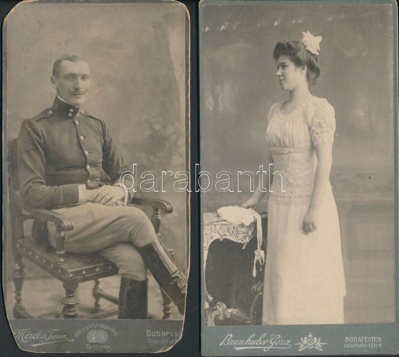 Jandl Béla (1886-1915): énektanár és neje, Sztojanovics Edith (Sztojanovics Jenő lánya) keményhátú fotó 11x21 cm
