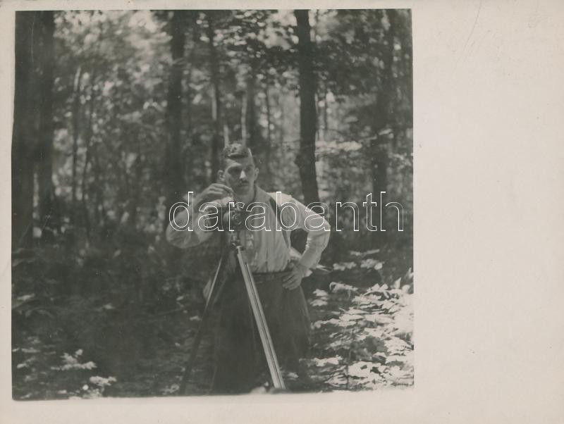 cca 1930 Kinszki Imre (1901-1945) fotografál, jelzés nélküli vintage fotó a szerző hagyatékából, 8,5x8,5 cm-es fotó 9x12-es fotópapíron