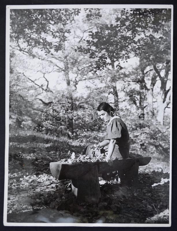 cca 1940 Lány erdőben, a padon, Korschelt Miklós (1900-1982) fotója, a...
