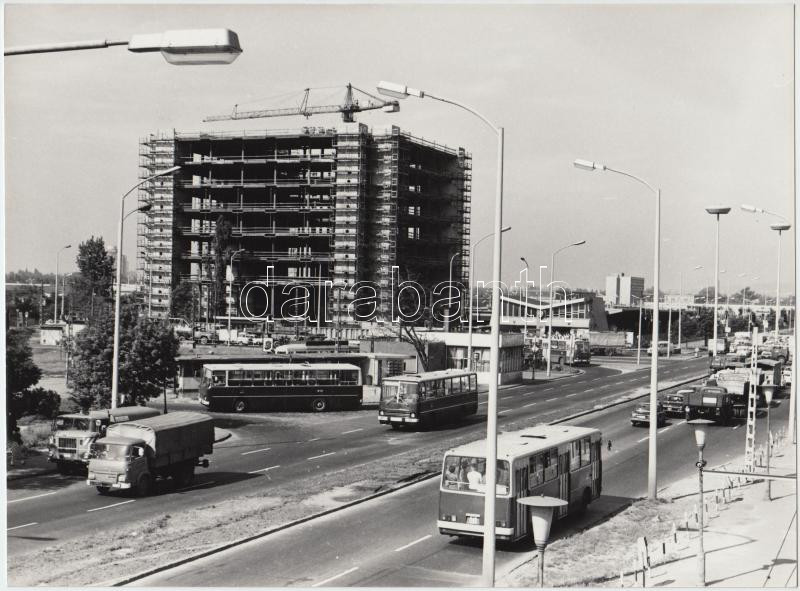 cca 1975 Budapest közlekedése, metró, HÉV, autóbusz az Örs vezér terén, 4 db vintage fotó, 18x24 cm
