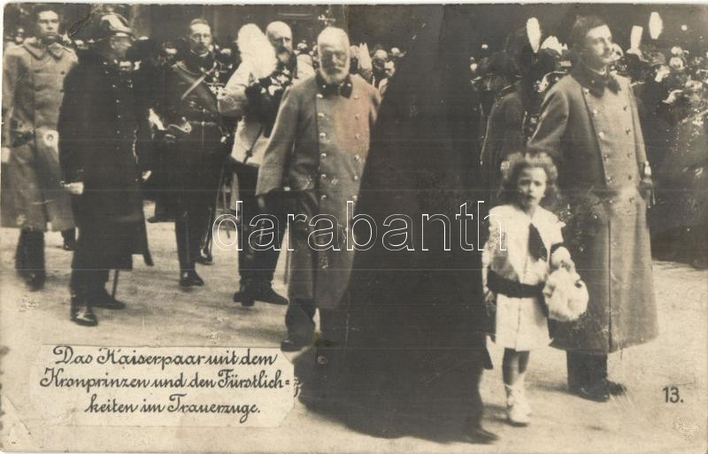 Vienna, Wien; Das Kaiserpaar mit dem Kronprinzen und den Fürstlichkeiten im Trauerzuge / Charles IV, Zita, Otto, Wilhelm II, Kronprinz Wilhelm, Ferdinand of Bulgaria, Leopold of Bavaria at the funeral of Franz Joseph (EK)
