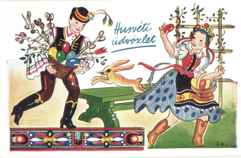 'Húsvéti üdvözlet' / Easter greeting postcard, folklore, s: R. L.