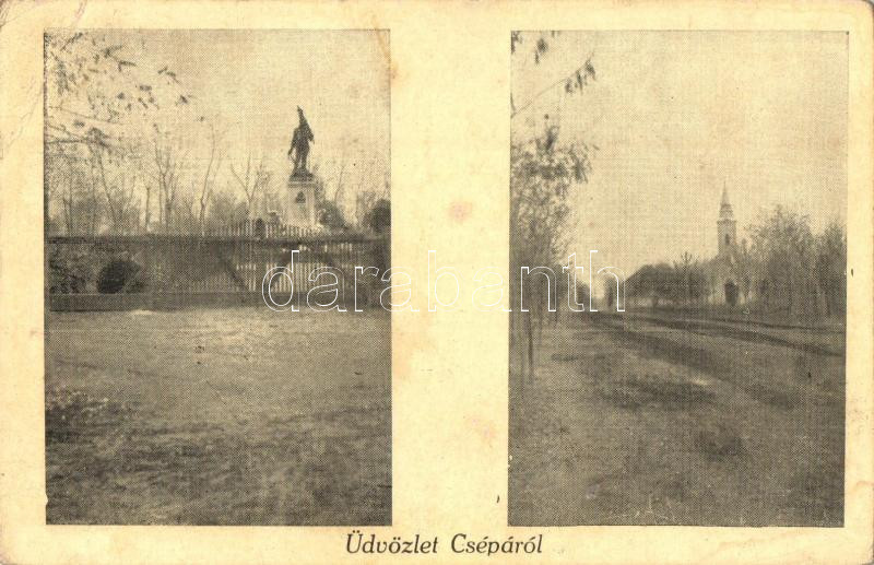 Csépa, templom, tér, Hősök szobra, Szokoly János kiadása (EK)
