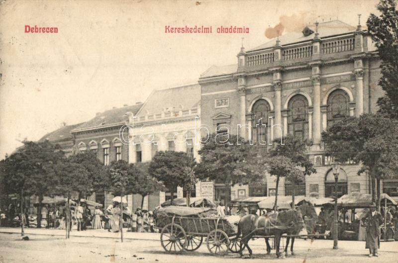 Debrecen, Kereskedelmi akadémia, piac, lovasszekér