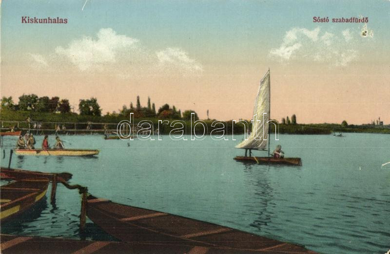 Kiskunhalas, Sóstó szabadfürdő, vitorlás, csónakázók, özv. Pressburger...