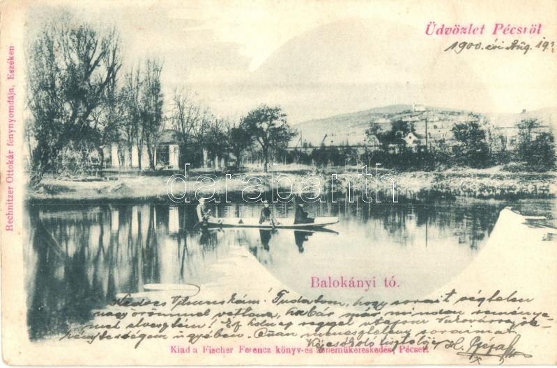 Pécs, Balokányi tó, csónakázók, kiadja Fischer Ferenc
