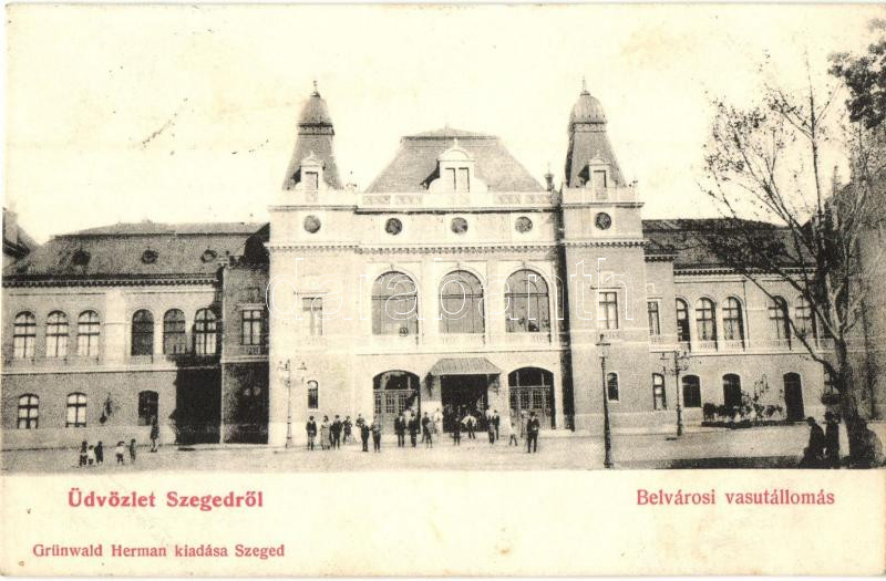 Szeged, Belvárosi vasútállomás, kiadja Grünwald Herman