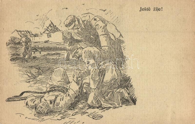 2 db RÉGI első világháborús cseh tábori posta lap, grafikák, V. H. szi...
